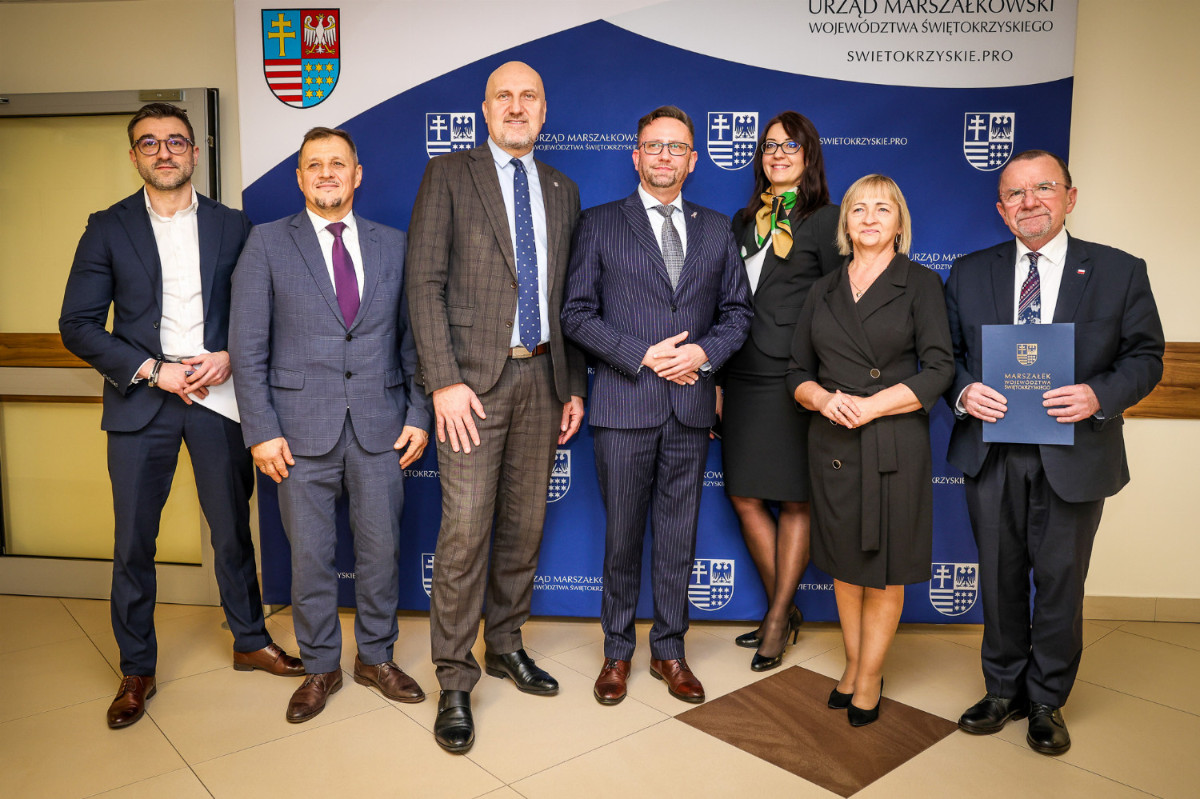 W dniu 10 grudnia 2025 r., odbyło się spotkanie, w którym udział wzięli wicemarszałkowie województwa świętokrzyskiego Grzegorz Socha i Marek Bogusławski, a także starosta powiatu jędrzejowskiego Paweł Faryna, wicestarosta powiatu jędrzejowskiego Maria Barańska, dyrektor Departament Rolnictwa i Obszarów Wiejskich Urzędu Marszałkowskiego Województwa Świętokrzyskiego Piotr Berentowicz, dyrektor Świętokrzyskiego Biura Rozwoju Regionalnego Jacek Toś oraz jego zastępca Paweł Kopacz.